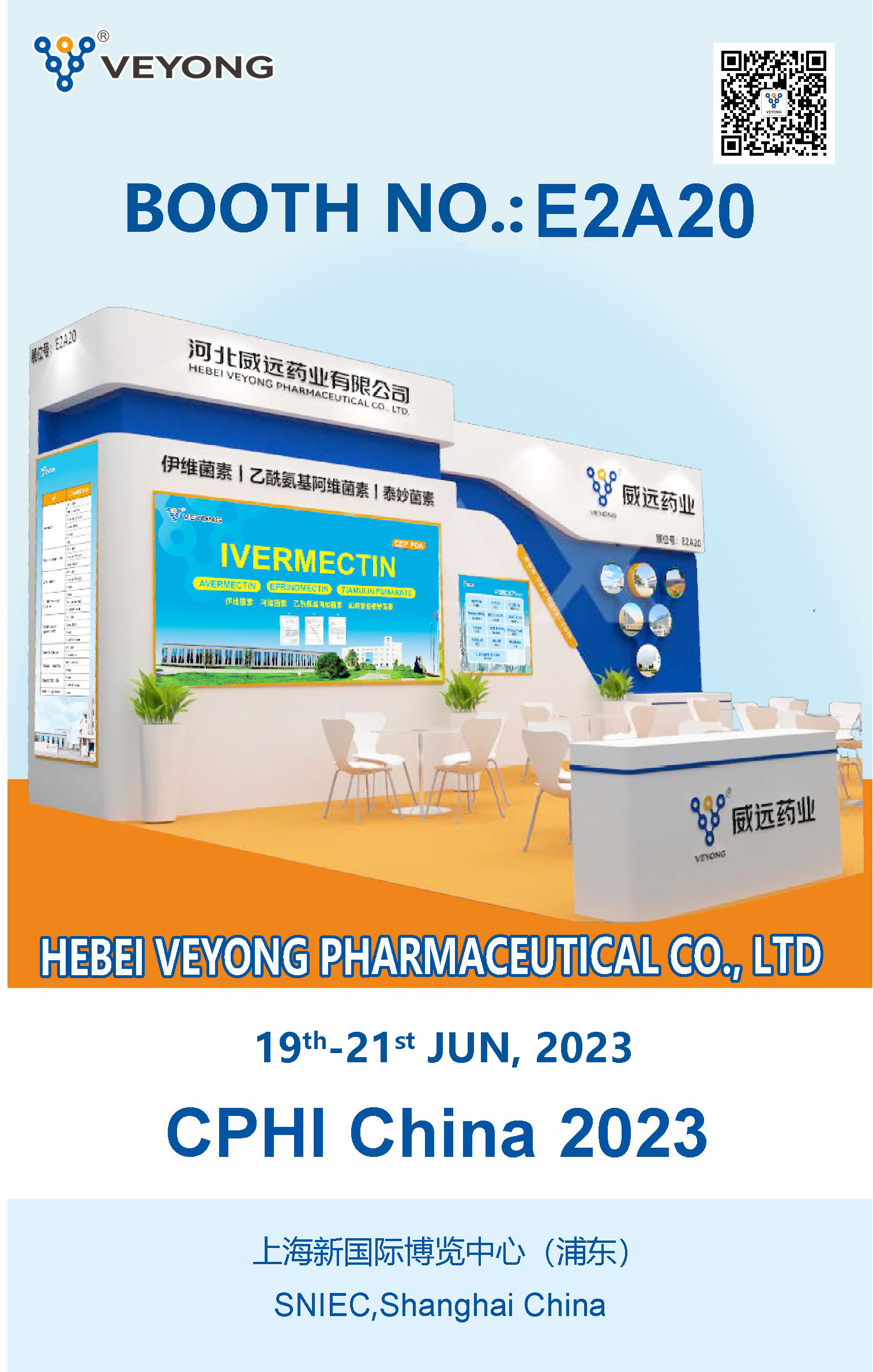 As one of the CPHI exhibitors, Veyong Pharma will set up an exhibition in the E2A20 exhibition hall. Here, we sincerely invite you to come to the site to exchange guidance and share this feast exclusively for pharmaceutical people. It is a great joy to be there!