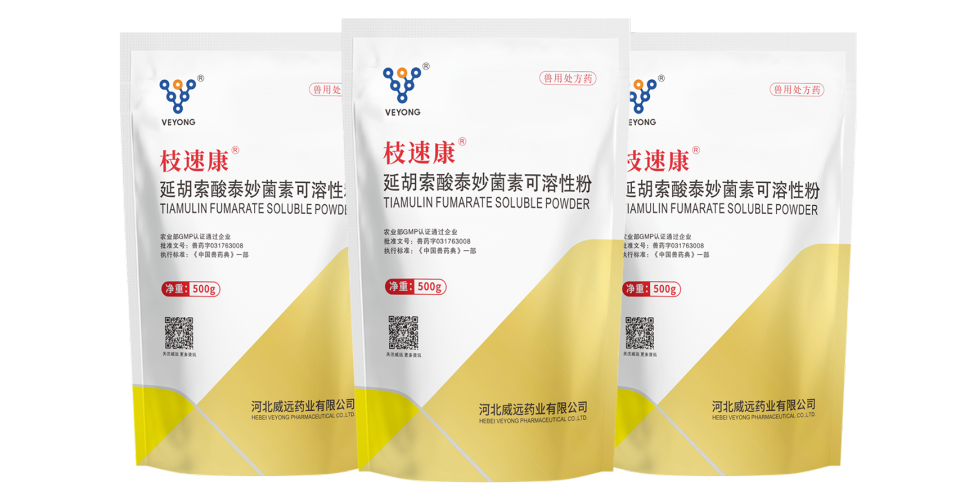 45% Tiamulin Hydrogen Fumarate Soluble powder is mainly used to prevent and treat chicken chronic respiratory diseases. Its main component tiamulin has bactericidal effect on sensitive bacteria. It also has good antibacterial activity against most Gram-positive bacteria including mycoplasma, staphylococcus and streptococcus (except group D streptococcus). It has a certain effect on Actinobacillus pleuropneumoniae, and has weak antibacterial activity against most Gram-negative bacteria. It has a significant curative effect on mycoplasma pneumonia, pneumonia caused by mixed infection of Bordetella bronchiseptica and Pasteurella multocida.