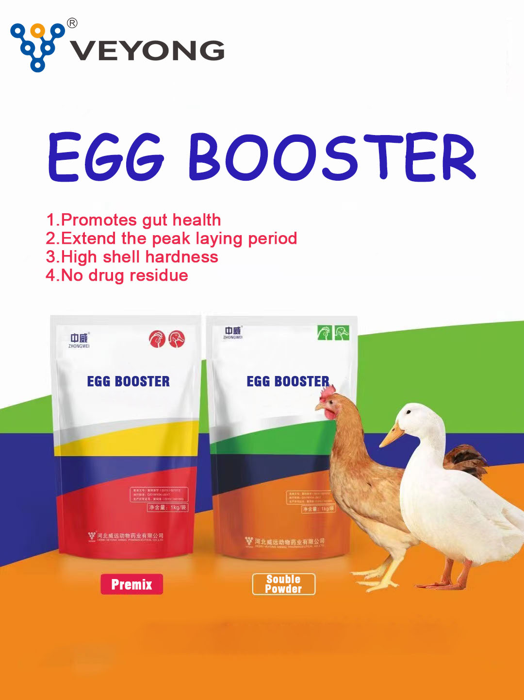 Egg Booster Powder could creates a perfect intestinal barrier for poultry by maintaining the integrity of the intestinal mucosal structure, improving its disease resistance and immunity, cultivating the competitive advantage of the intestinal commensal flora, and promoting the secretion of intestinal immunoglobulins. , so as to achieve the purpose of intestinal health.