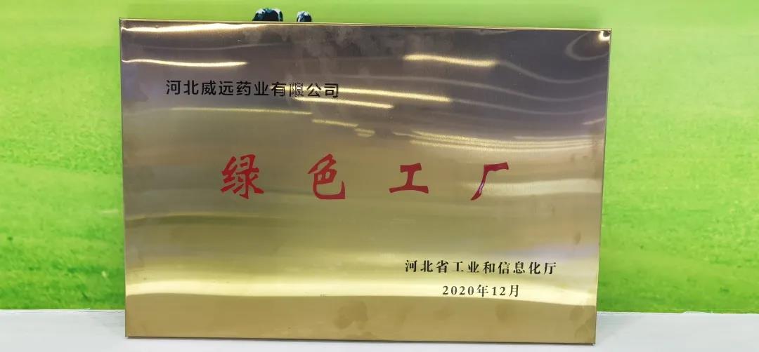 Recently, Veyong Pharmaceutical was recognized as a “Provincial Green Factory” enterprise by Hebei Provincial Department of Industry and Information Technology. It is reported that the green factory is the construction of a green manufacturing system carried out by the Hebei Provincial Department of Industry and Information Technology in order to accelerate the green development of industry and promote structural reforms. It covers “intensification of land use, harmless raw materials, intelligent and clean production, and waste Evaluation of index items such as resource utilization and low-carbon energy.